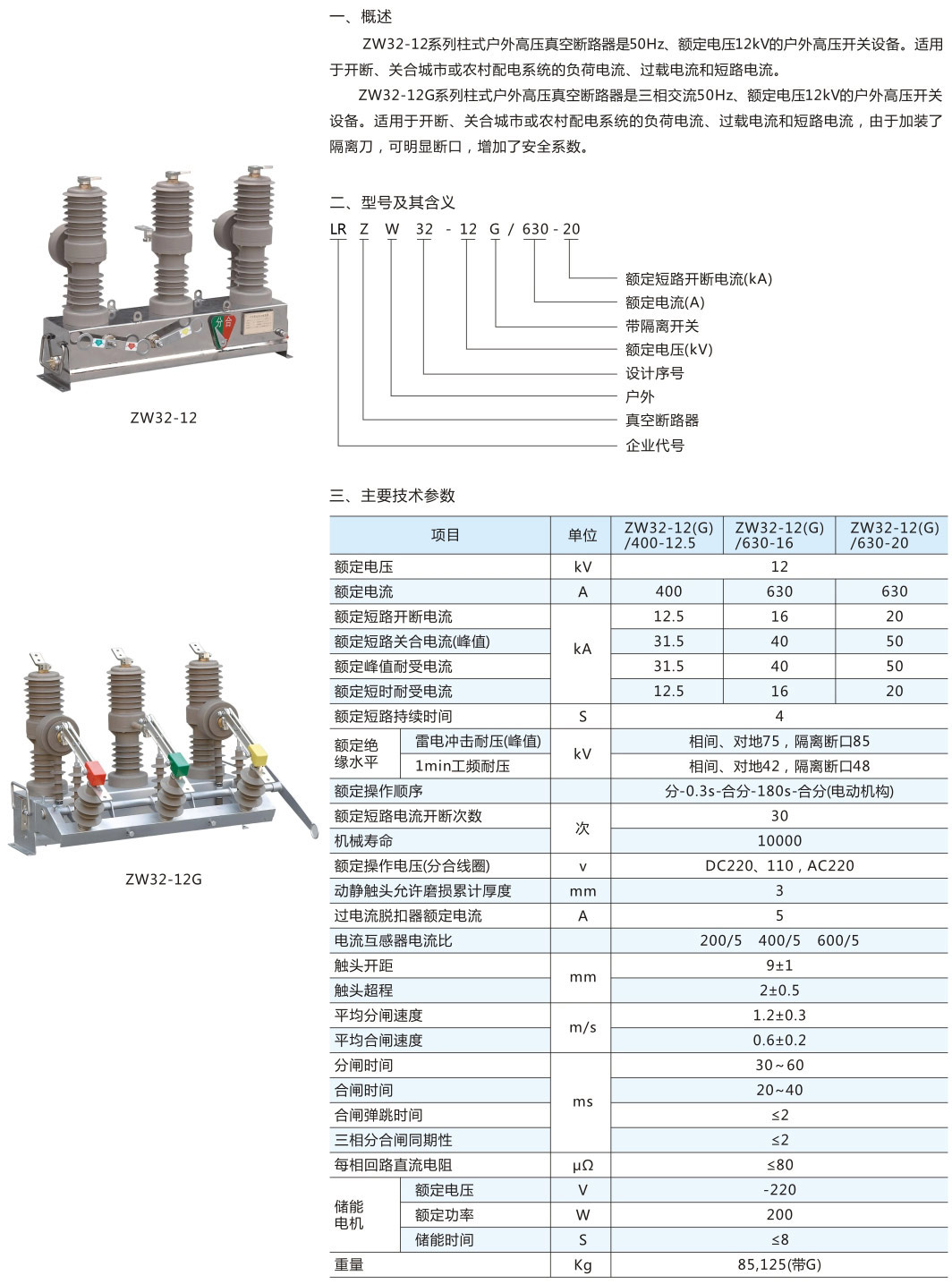 ZW32-12/1250-20,ZW32-12/T1250-25,ZW32-12/1250-31.5