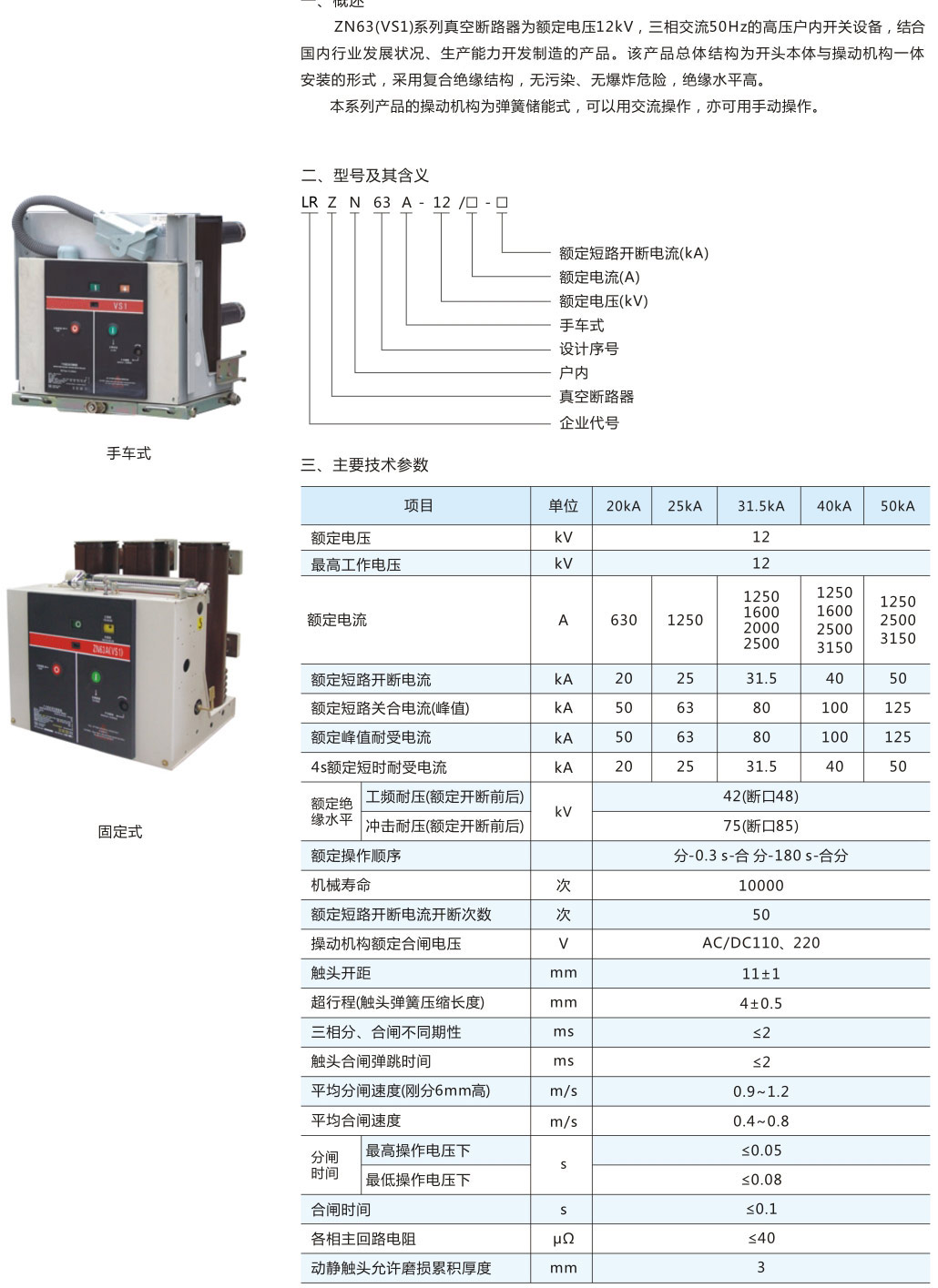 VS1-12/1250-20,VS1-12/1250-25,VS1-12/1250-31.5